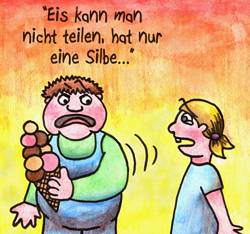 ![]() "Witz kann man nicht teilen, hat nur eine Silbe" |