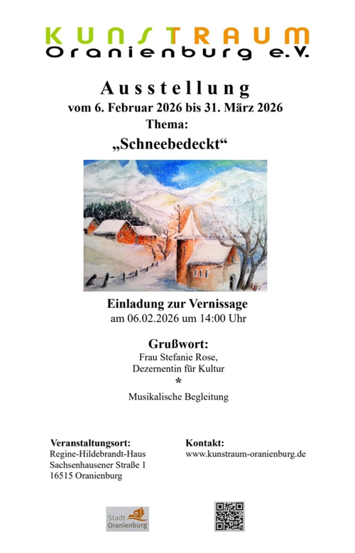 Ausstellung "Schneebedeckt" (Gemeinschaftsausstellung mit dem Verein Kunstraum-Oranienburg e.V.) Regine-Hildebrandt-Haus 06.02.-31.03.2026 |